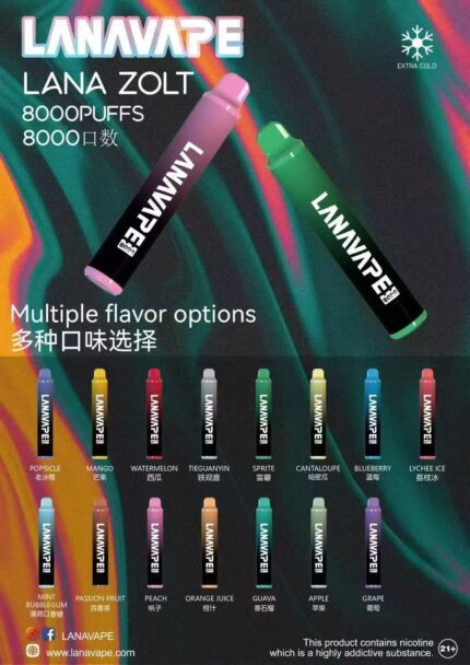 LANA8000口大容量拋棄式一次性電子煙,LANA全新推出 lana zolt 8000口大容量抛棄式一次性電子菸,ZOLT的電子菸油有15ml,可抽吸高達8000口次數,可充電重複使用,無需擔心電量問題。lana8000口抛棄式電子菸擁有17種口味,口感細膩絲滑,每一種口味都能讓您享受極緻口感。并且每款電子菸油口味都經過專門調配,專屬口味,每一種電子菸口味都經過精心調配,保證帶給您最佳的吸食體驗, 溫馨提示:下單以後請加客服line:wdc8267隨時查看貨況,了解更多優惠活動。