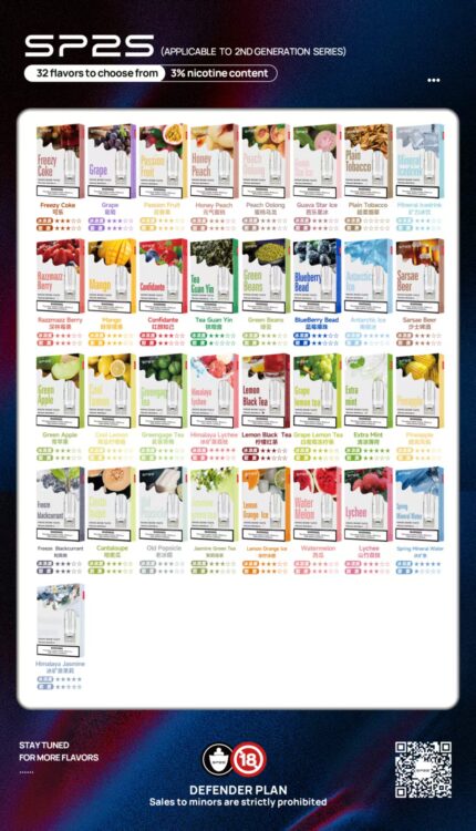 Sp2s pro菸彈多種水果風味,SP2菸彈提供極致口感,與Relx、叮啞、Candy、sp2s等一代電子煙主機無縫配合,我們的菸彈設計簡單,易於使用。只需輕輕插入您的電子菸裝置,便能立即享受到滑順的抽菸感覺。