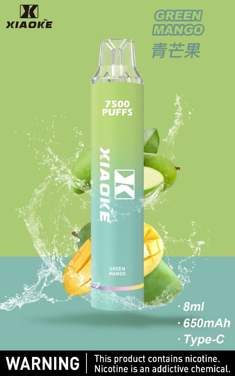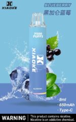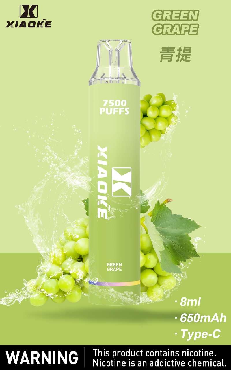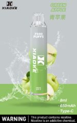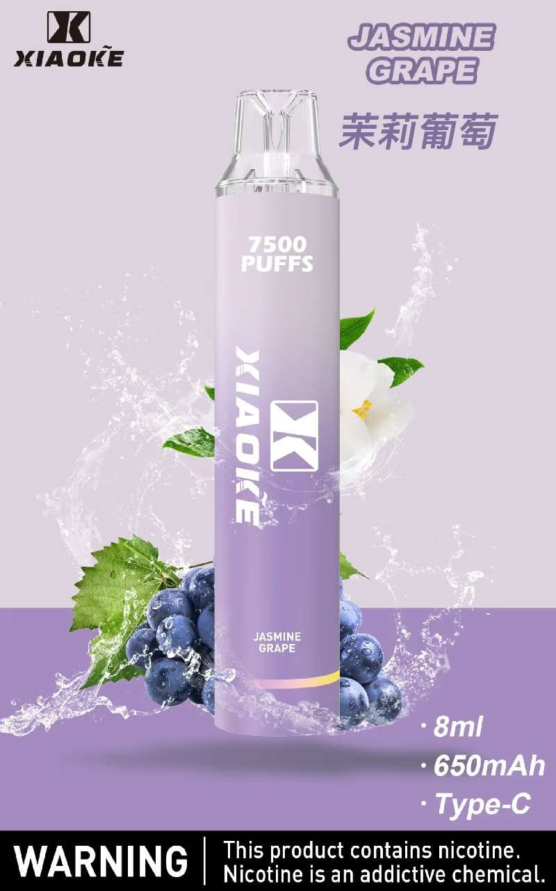 Xiaoke枭客7500口一次性抛弃式電子煙,内置650mAh 电池和8  ML 烟油,提供多达 7500口 的持久吸烟体验。设备设计即插即用,可充电,非常适合随时随地使用。